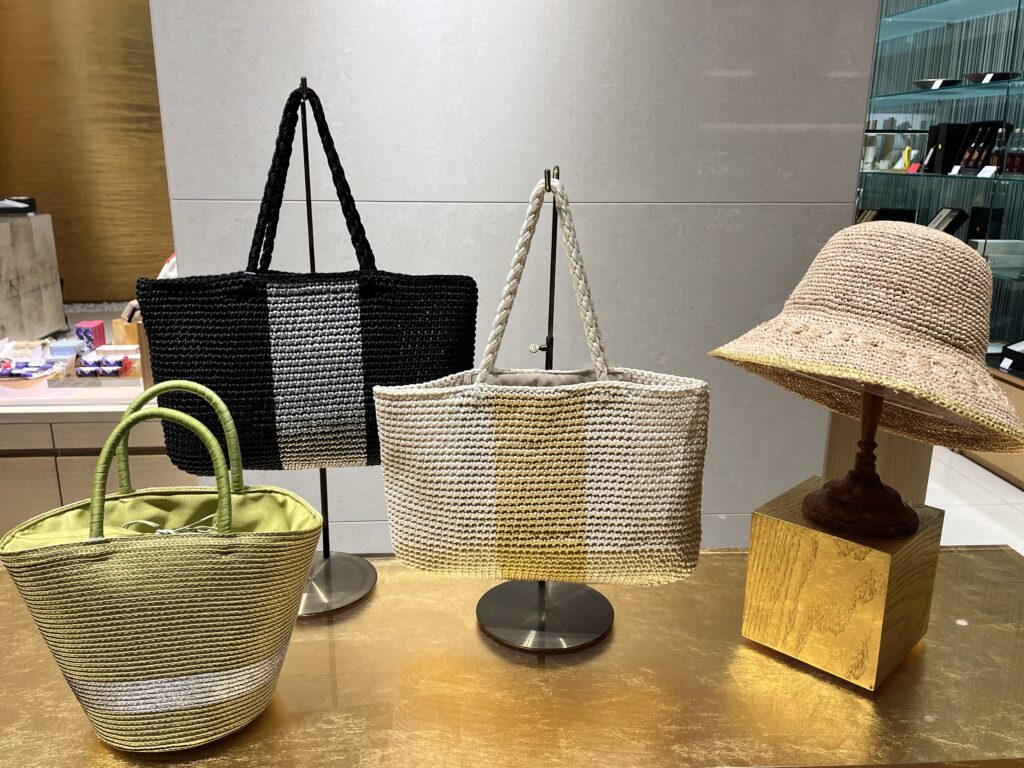 店頭には、初夏のお出かけにぴったりなバッグ、ハットが登場しました。